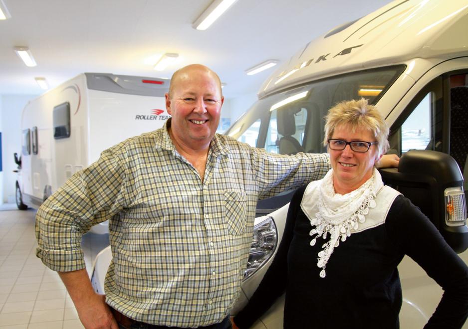 Styreleder Jan Olav Kveli og daglig leder Frida Kveli ved Bobilsenteret Namsos var de første som innførte fem år garanti på nye bobiler. Foto: Frank Skaufel