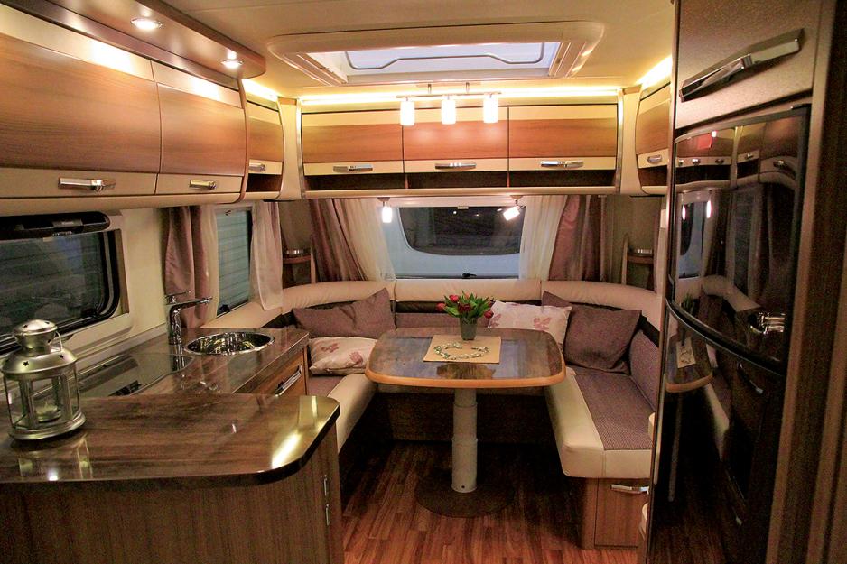 – Men det stiller også helt andre krav til vogna. Ofte trenger du et lite vinterfortelt eller et såkalt spikertelt på ca 5 kvadratmeter. I spikerteltet er det plass til en liten hjørnesofa, eller et par stoler et bord, en TV og plass til å henge opp litt yttertøy. Det er ikke like stor plass i et spikertelt som i et vanlig sommertelt, og da er planløsningen på vogna viktig. Har den en romslig rundsitter (stue), har du plass til besøk og gjestesenger i vogna, er det god plass ved kjøkkenbenken, har vogna bra golvplass, er badet romslig osv, fortsetter han.