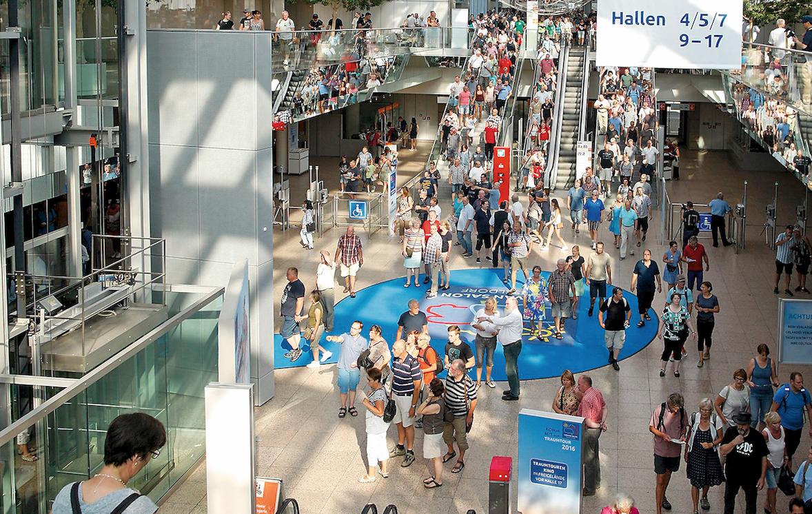 Alexander Kempe er pressesjef for messen, og han kan stolt fortelle at årets utgave, som er den 56. i rekken, var historiens største - på alle måter. I løpet av den halvannen lange uken messen varer er det forventet mer enn 200 000 besøkende på imponerende 214 000 kvadratmeter utstillingsflate. De 13 hallene utgjør til sammen 30 internasjonale fotballbaner, fullstappet med utstyr og tilbehør - og ikke minst nye, skinnende og fristende bobiler og vogner.