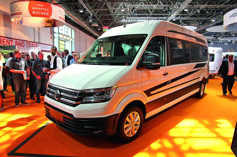 En aktør som har skapt ekstra oppmerksomhet i bransjen i år er Volkswagens nye Crafter som flere bobilprodusenter ser på, med stor interesse. I januar viste Knaus frem sin konseptbil Saint&Sinner, basert på Crafter. Dette ble messens mest omtalte og avbildede modell. VW har et mer moderne og personbilpreget førermiljø enn Fiat, og mange avanserte sikkerhetssystemer. Og Crafters automatgir er et salgsargument i seg selv. Men VW har ikke tilpasset sitt chassis for tradisjonelle bobil-påbygg, derfor ser vi foreløpig kun innredede bybobiler. Det var to produsenter, som også er representert i Norge, som viste ferdige modeller: Westfalia Sven Nordin og Knaus Boxdrive. Modellen som ble presentert på messen er en First Edition av Boxdrive, kun produsert i 150 eksemplarer. Her finner du tekstiler på veggene med høy finish. Crafter er noe smalere enn Ducato, og derfor er det langsgående seng som kan heves og frigjøre lagringsplass under - når den ikke er i bruk.
