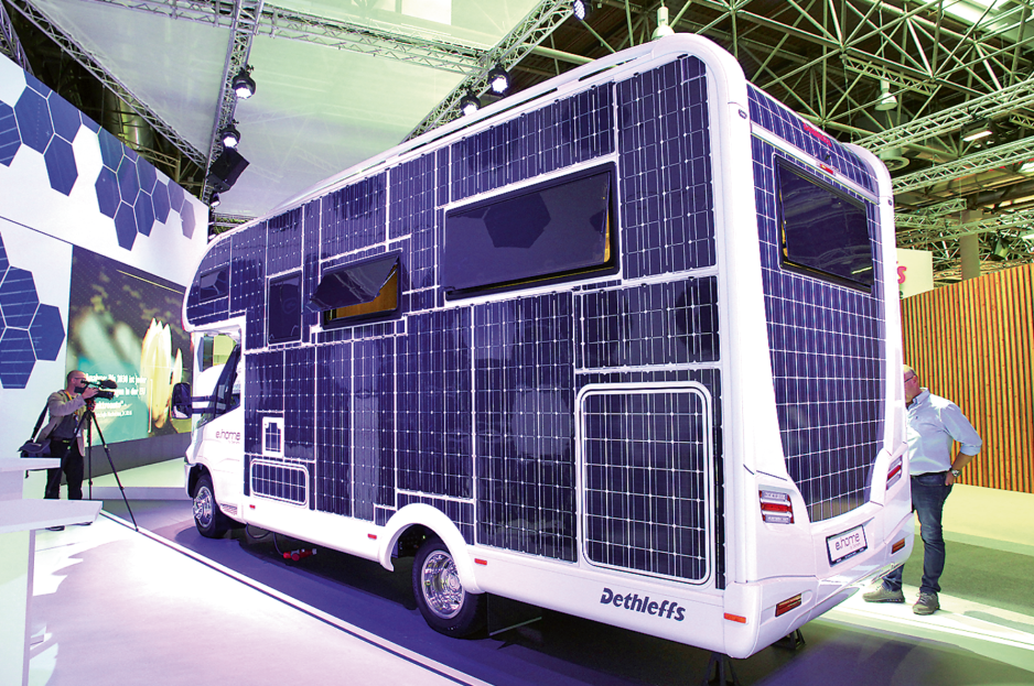 Dethleffs har for vane å presentere en overraskelse eller to på denne messen. I år viste de som første etablerte bobilprodusent frem en studie på en el-bobil. Basisbilen er en Iveco Daily med produsentens elmotor. Og det er ikke bare det fossile drivstoffet som er kuttet, her finner du heller ikke noe gass. Det betyr at kjøleskap, kokeutstyr, oppvarming og drift av selve bilen baserer seg på strøm fra batteriene. Til opplading benyttes solcellepaneler, som hele bilen er dekket av. Men regnestykket går likevel ikke opp, forbruket vil være langt større enn tilførselen. Dethleffs forteller at de har klokketro på teknologien, og at godt fungerende el-bobiler vil komme på markedet i fremtiden. Det er riktignok ganske tydelig at dette er en studie, og langt fra et ferdig produkt. For eksempel er det brukt flere krefter på å få til en lavenergi-oppvarming av bobilen med infrarød varme og varmelagrende elementer - enn for eksempel å øke rekkevidden.