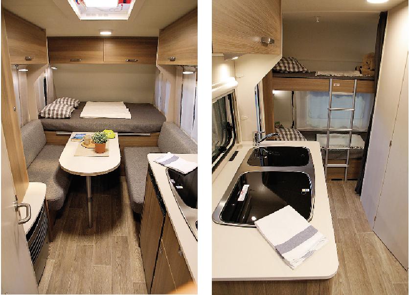 Tyske Dethleffs viser at de mener alvor når de hevder å være familievennlige. Campingvognen C´joy 480QLK skal være markedets minste og letteste køyesengmodell. Serien, som består av rimelige og lette vogner, har fra før tre modeller som alle har tre sengeplasser. De to minste modellene, 390QSH og 410QL, har samme tverrstilte dobbeltseng som nye 480QLK. I tillegg har 480-modellen som sagt køyeseng, og sittegruppen kan også res opp – noe som gir overnattingsmuligheter for hele seks personer. Målene er (bredde x lengde x høyde) 212x596/706x261 cm. Det er stor lagringsplass under senga, med adkomst utenfra gjennom luke i veggen.