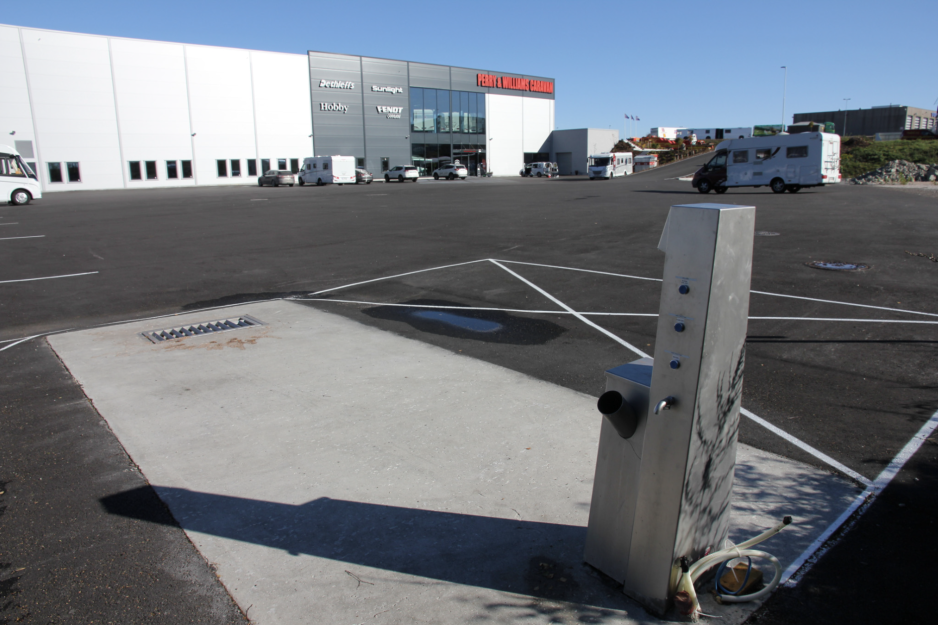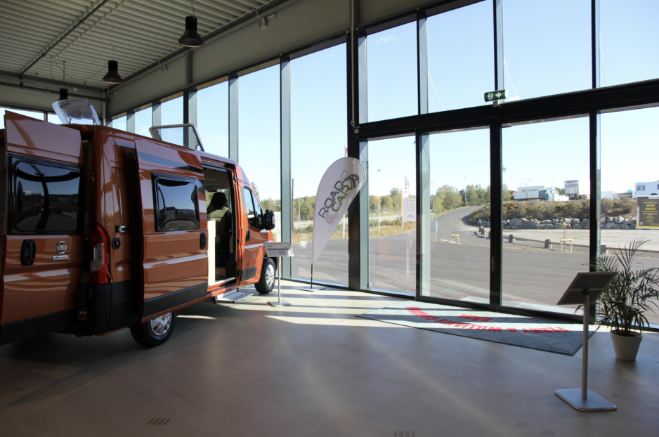 Det nye caravansenteret har et stort kundegrunnlag med hele 14 campingplasser innenfor en radius på 30 minutters kjøring. På den store parkeringsplassen er det etablert gratis bobilplasser med tømmemuligheter, og innendørs i de store utstillingshallene over to plan har softis-maskinen allerede rukket å bli et trekkplaster.