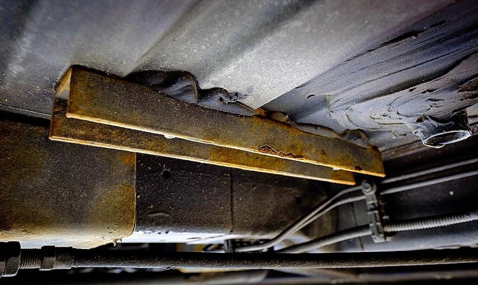 På en bobil viser vår stikkprøve at det er de delene som påbyggeren benytter som først begynner å ruste. Men også originale chassisdeler trengte behandling. På bybobilen som brukes året rundt og er fire år gammel, hadde rusten et godt tak flere steder.