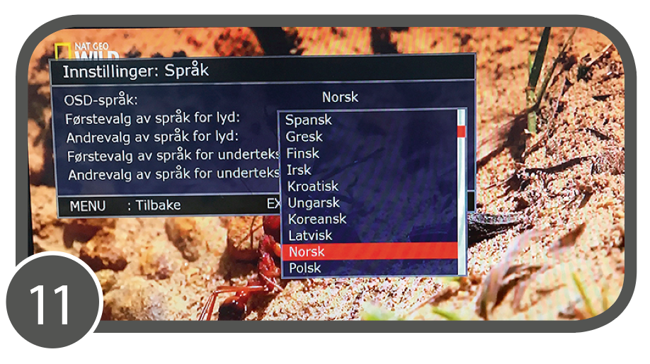 10. Da er det bare to ting som gjenstår: velg språk og sørg for at parabolen slår seg ned når man skrur av tuneren med fjernkontroll.