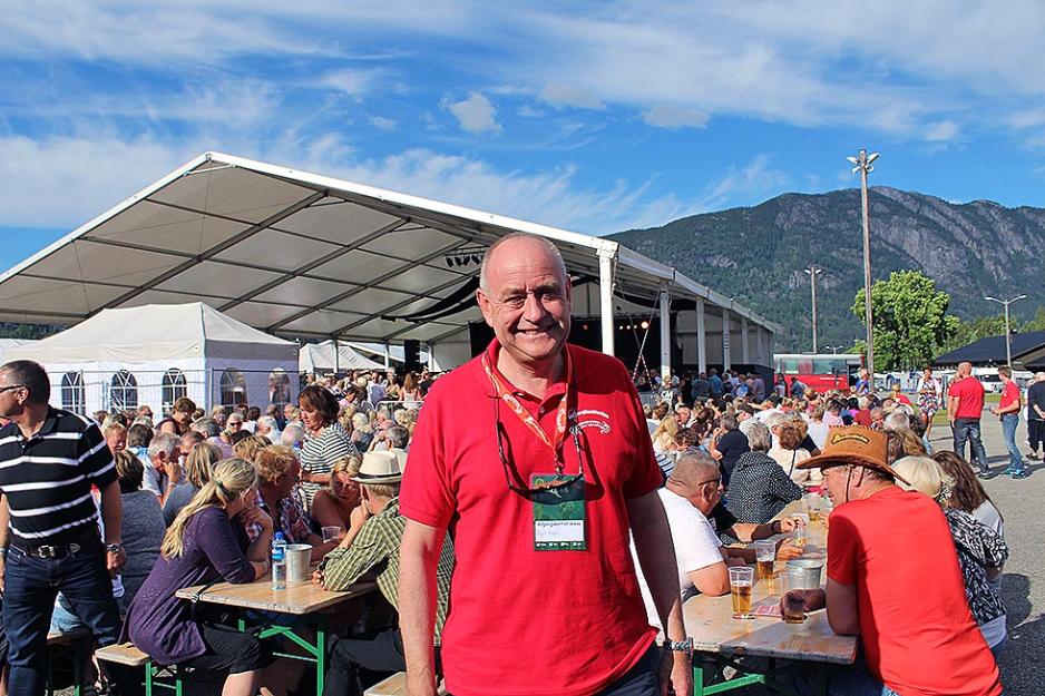 Daglig leder Egil Moen kan fornøyd konstantere at dansegulvene under Seljordfestivalen blir flittig brukt og folk koser seg i sola.