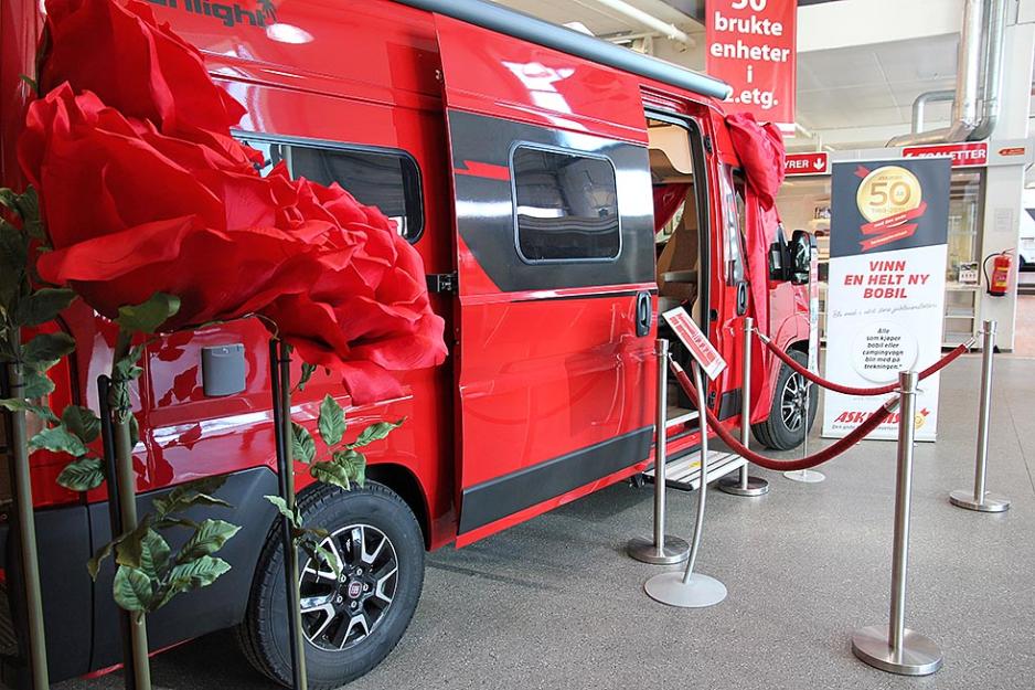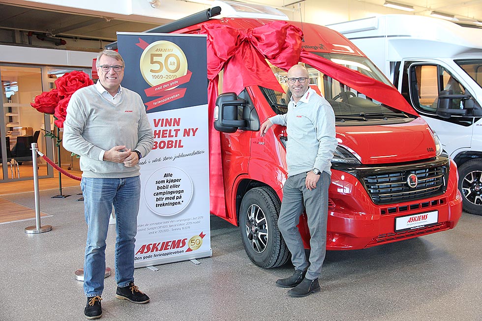 Vestfold-forhandleren Askjems Camping-Center AS fyller 50 år i år. Det markeres nå i april med langåpent hver dag til kl 20. Og alle nye kunder er med i trekningen av en splitter ny bybobil med verdi 700 000 kr. – Den kan du beholde selv, gi den til noen du er glad i eller selge den, forteller salgssjef Fred Karlsen.