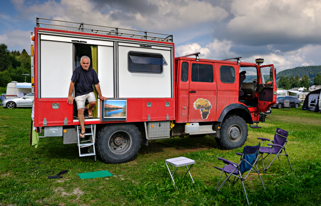 Tanker farer rundt i hodet på beboerne på Mjøsas ferie- og fritidssenter ved Brumunddal når det store knallrøde kjøretøyet ruller inn på campingplassen.