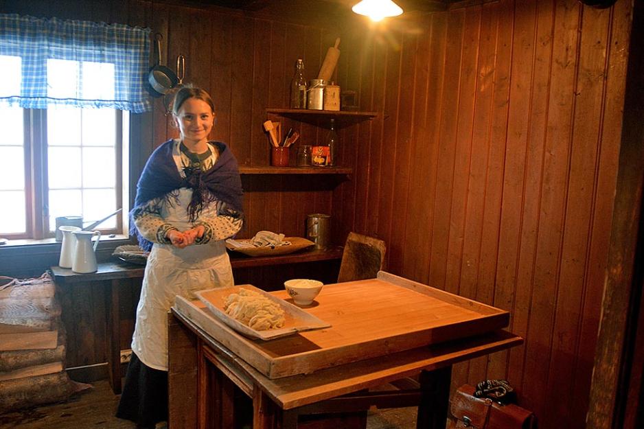 Vi fikk et glimt i hvordan husmannen levde, både gammelhusmannen sjøl og husmannsgutten fikk vi hilse på, samt at husmannskona styrte og stelte i sitt enkle hjem. Servering var det mer enn nok av, vi hadde ingen sjanse til å bli sulten. Likevel spanderte vi på oss en god kopp kaffe med lokale bakervarer i idylliske omgivelser i den staselige trønderlåna som står på Stiklestad.