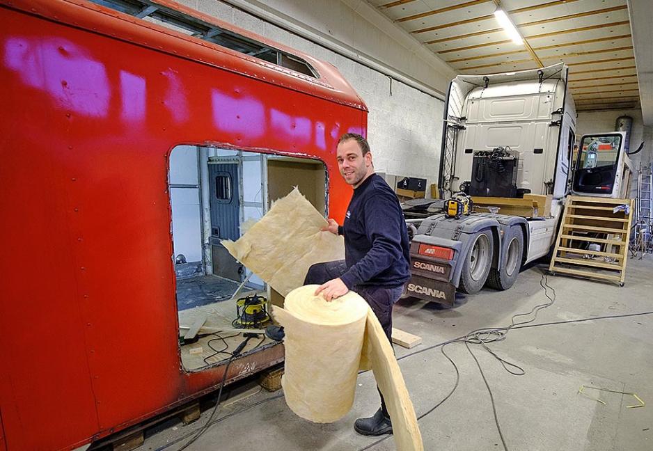 – Nå innreder vi én ny lastebil i uken. Det er veldig populært, så vi har for tiden fire måneders ventetid, smiler en travel Henjo mens han demonterer setene i en helt ny Scania.