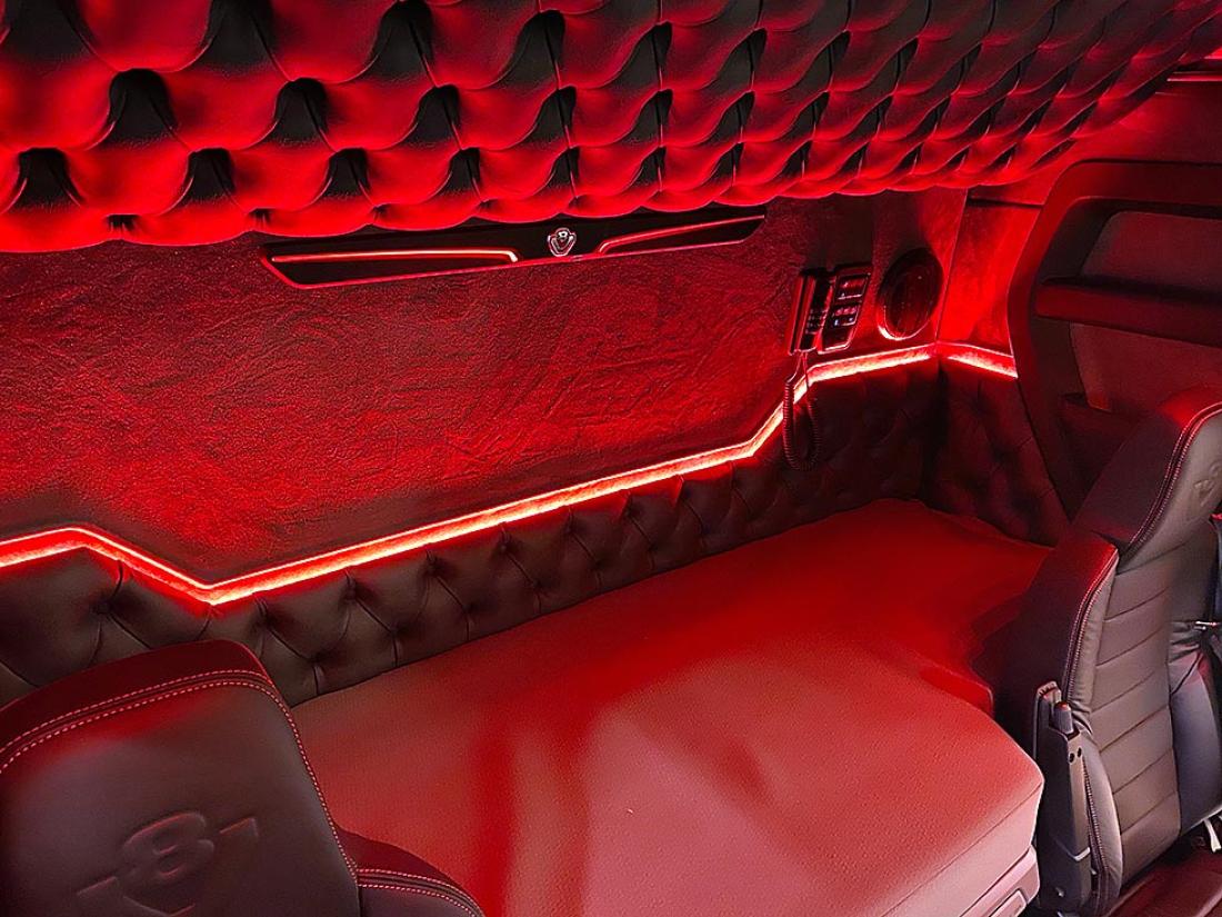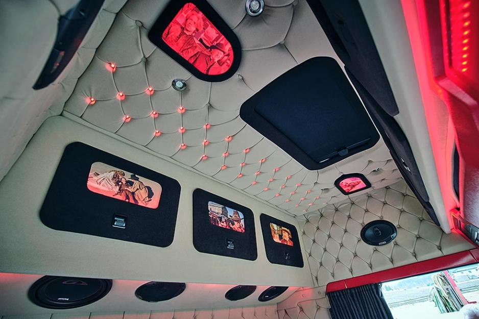 – Vi innreder sjåførdelen og sengeområdet. Da monterer vi gjerne led-lys i alle farger, lydanlegg, videoanlegg, kjøleskap, mikrobølgeovn og en liten fryser. Vi fikser ulike typer trekk og paddinger, i alle farger og materialer. Ønskes det aircondition som fungerer også når motoren ikke er i gang, leverer vi også det, forteller Henjo til Din Fritid.