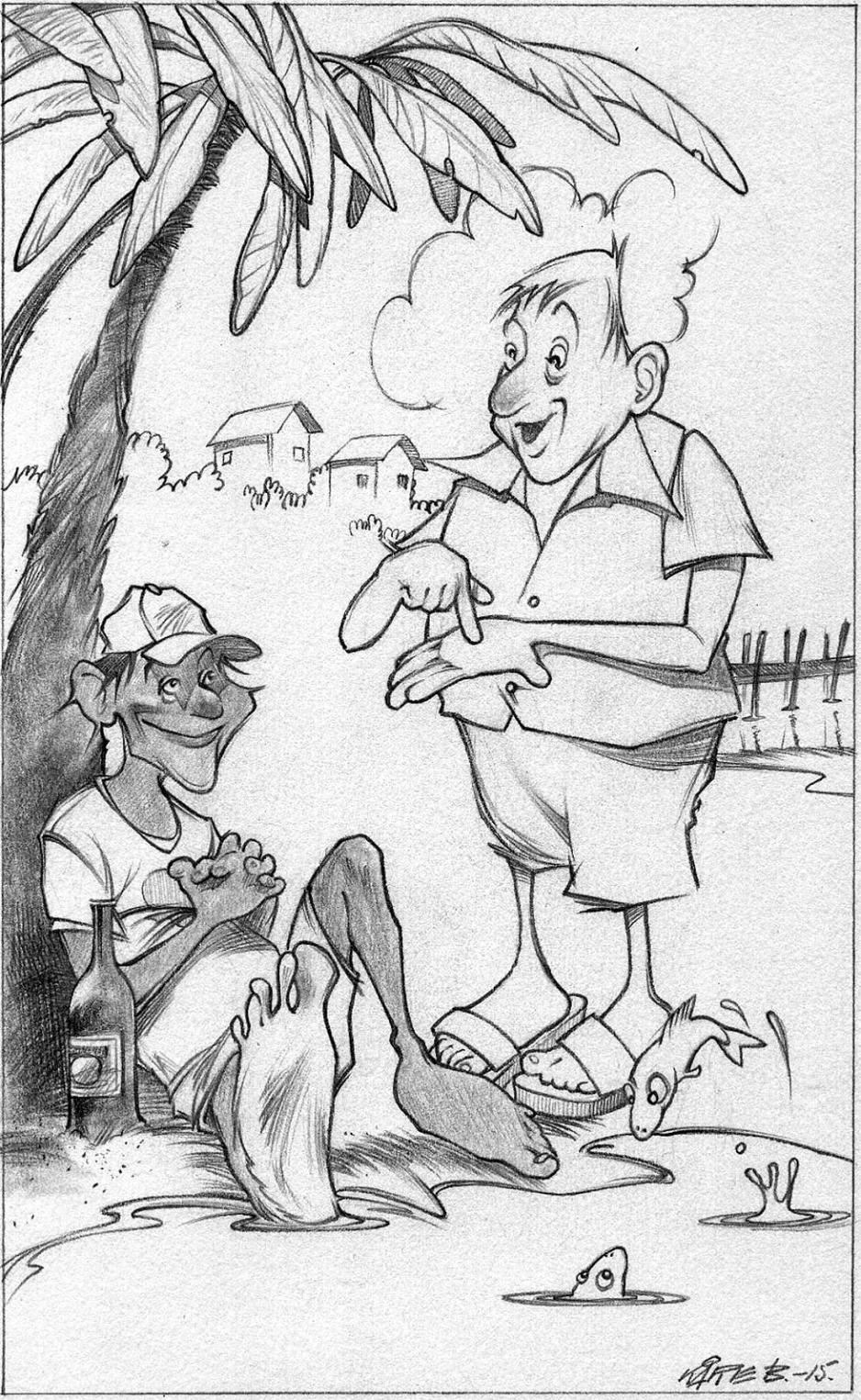 Det finnes ei god historie om fiskeren på ei stillehavsøy som satt og døset under et tre og var såre fornøyd med tilværelsen og livet. Han hadde vært oppe før soloppgang, dratt på havet, hentet nattens fangst, levert denne og fått oppgjør. For det hadde han kjøpt mat og ei flaske vin. Nå satt han der og så på livet i havna og på de andre som jobbet - og bare ventet på at han like før solnedgang skulle ut på havet og sette garna sine.