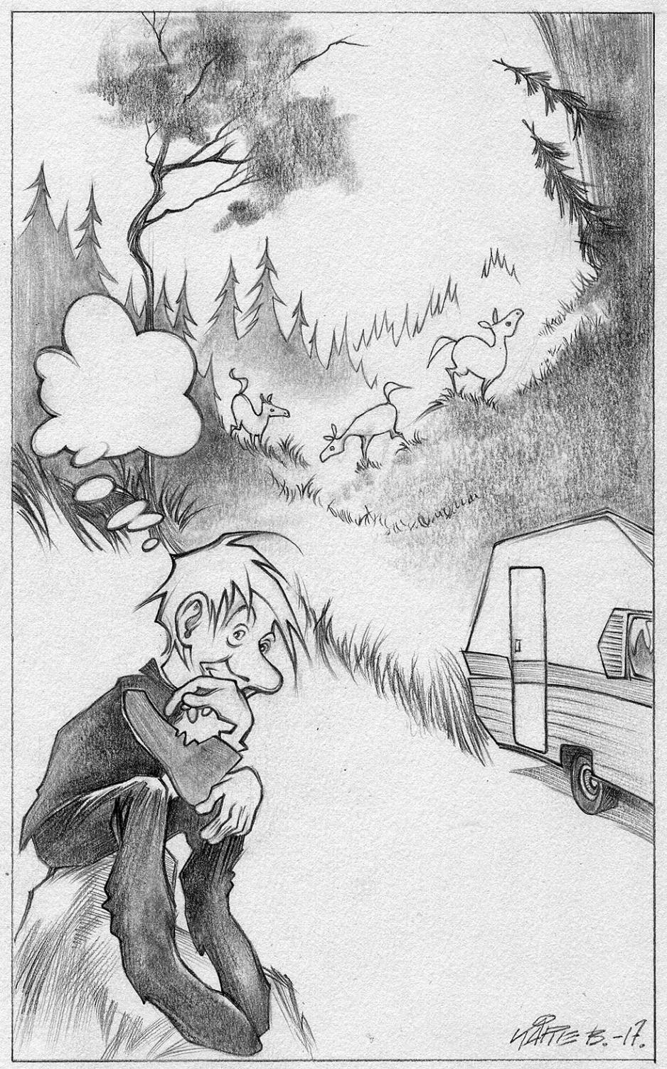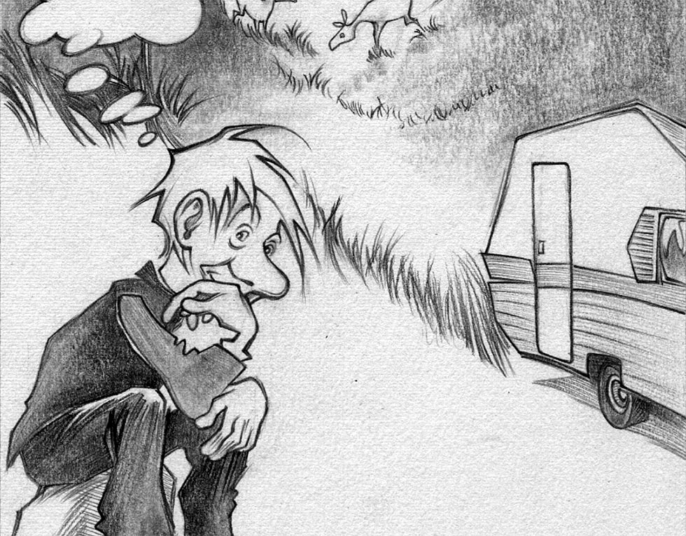 Det er mye god livsfilosofi her: Man må altså ikke på liv og død, gjøre noe hele tiden, om det så kun er å sitte og tenke. Man kan også sitte uten å tenke i det hele tatt. Og da kan små campingvogner være midt i blinken.