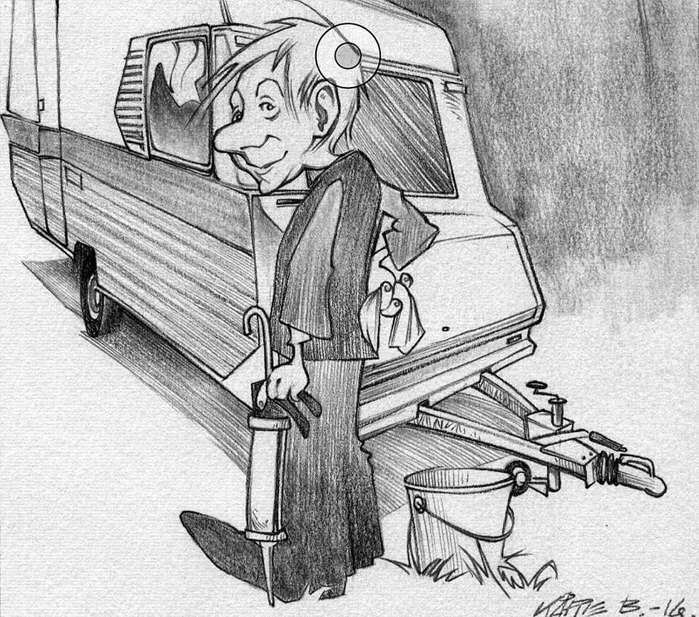 Heldigvis er ikke en liten 92-modell Solifer et aldeles uoverkommelig prosjekt. Antall kvadratmeter er innenfor det akseptable. Med ei solid gardintrapp og middels «pensjonatarmer» dekker jeg hele arealet. Jeg ser for meg å benytte samme teknikk som de fleste ansiktsbehandlingsklinikker foretar på godt voksne damer: Først litt renseveske, så manuell fjerning av nupper her og der, deretter en nøytraliserende eliksir, før man påfører det siste laget som skal glatte ut og beskytte. Men det gjelder å ha i mente, både her og i spa-salongen, at det vil koste alt for mye av tid, penger og energi å forsøke å fremstå som en 16-åring – eller i campingvognanalogien: Som nykjøpt. Tiden setter sine spor. Jeg ser det hver dag i speilet.