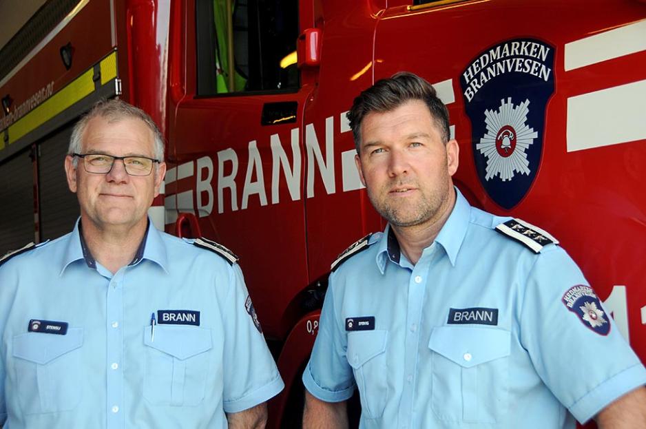 Beredskapsleder Per Harry Stensli (t.v.) og brannsjef Torgeir Dybvig i Hedmark Brannvesen ser store fordeler med ny, trafikksikker E6.