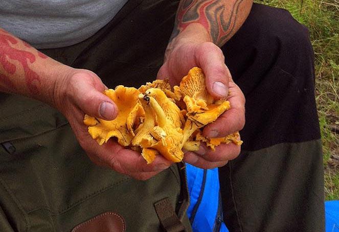 Vi er ikke sånne tøffe soppkjennere, men holder oss til de to typene vi er helt sikre på: Kantareller og steinsopp. Vi går time etter time i skogen, og finner alltid litt sopp, men drømmestedet har vi altså ennå til gode å ramle over. Der hvor du setter deg ned på huk, og det plutselig er oransje små hatter overalt.