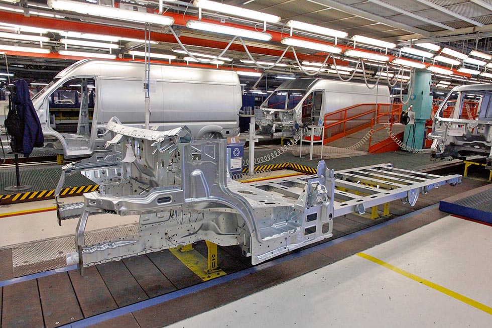 Det er imponerende størrelse og proporsjoner på Sevel-fabrikken som hver dag produserer 1100 biler. Foto: Fiat