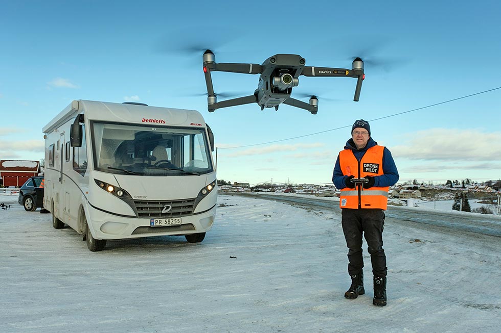 – Jeg liker droner veldig godt, og mener det er et perfekt verktøy også for bobilfolk som har fått et relativt enkelt verktøy til å sikre ferieminner fra lufta, forteller Anders ivrig.