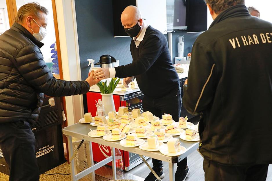 – Vi er historierike og er stolte av det, men veien ligger åpen foran oss, og det er først og fremst der vi har fokus, forteller Morten Lillehagen, daglig leder i Kroken Gruppen AS. Tross koronatiltak ble det mulig å gjennomføre en liten jubileumsmarkering med kaffe og kake den 19. mars.