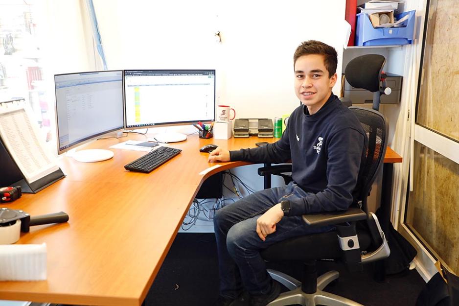 – Jeg er klar for mer ansvar og trives med oppgavene her. Det er ekstra stas at det ble ledig et hjørnekontor med vindu, to store skjermer og en egen arbeidsplass. Her har jeg det supert, men før jeg kan sette meg ned må jeg rydde på lageret og sjekke om det er nok deler til butikk og verksted. Nå ser jeg fram til sju ukers arbeidserfaring hos Stamsaas, smiler han ivrig. Han kan fortelle at arbeidsoppgavene er variert, butikkhyllene skal alltid bugne av varer og han er i tillegg ansvarlig for å ta imot vareleveringer.