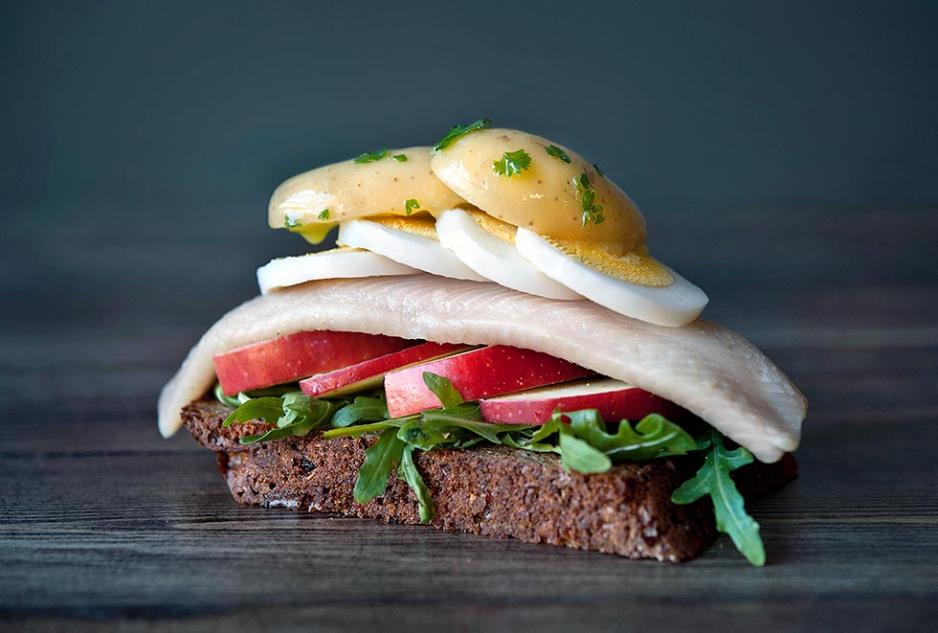 Herlige danske smørrebrød signert kjendiskokken Ole Martin Alfsen. Panert fisk og reker er klassikere på høye smørbrød, og supert som middagsrett.