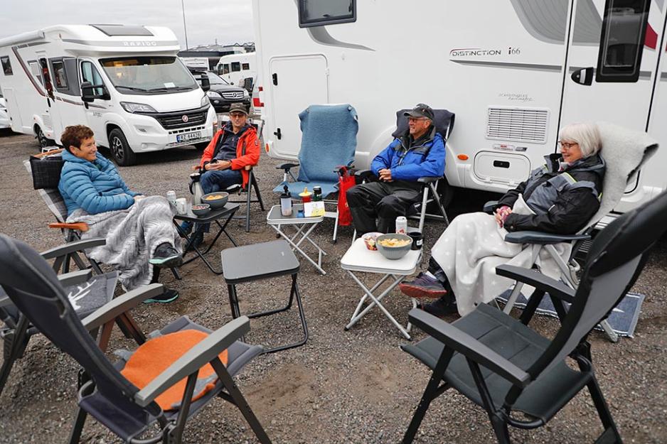 I tillegg viste været seg fra en langt mer kjølig side enn man kunne ønske. Likevel traff vi flere grupper som hadde det trivelig i mindre grupper utendørs, da vi besøkte campen på lørdag kveld. Som vanlig ble det tilbudt transport til og fra messeområdet med veteranbuss.