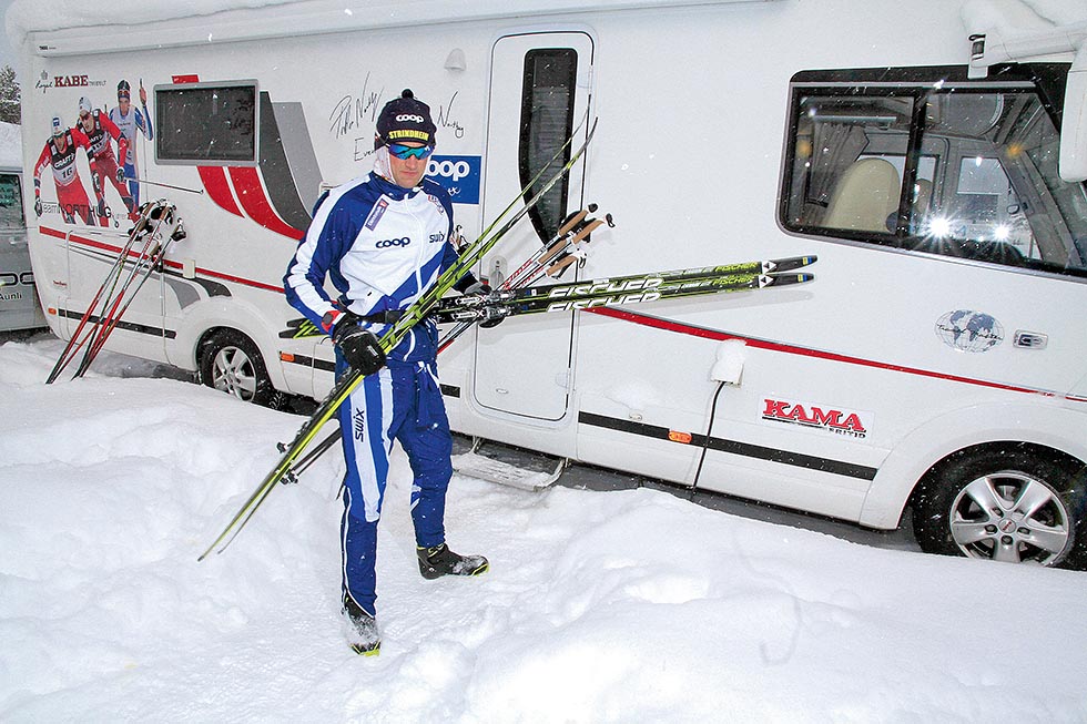 – Vi trengte en praktisk bobil til robust bruk og det har vi fått. Det er mange som tramper inn med skoa fulle av snø, men med gulvvarmen på er det stabilt 22 grader og ingen problemer med fukt. Selv om vi erter svenskene så tror vi på dem når det gjelder å lage kvalitet, avslutter John Northug før han løper av gårde for å få med seg starten på 3-mila.