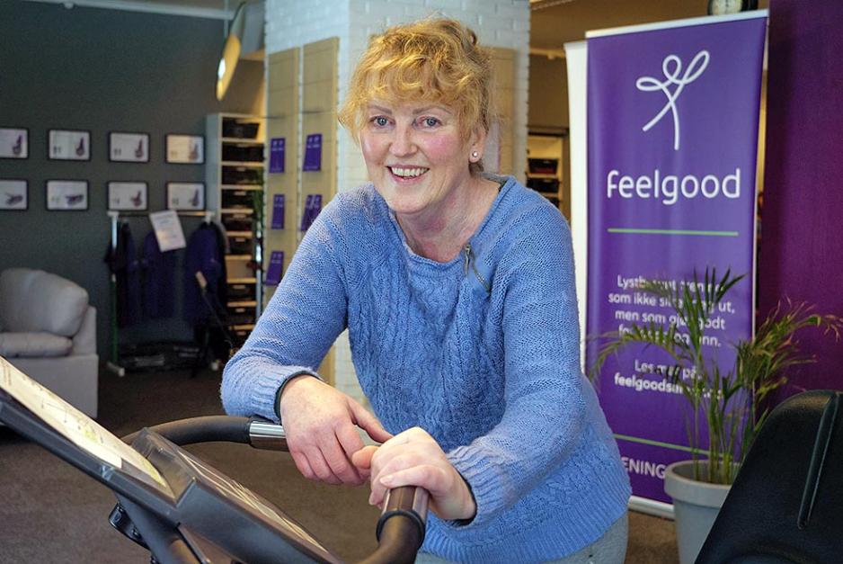 Konseptet på treningssenteret Feelgood er motoriserte apparater som er enkle å bruke. De hjelper deg til å gjøre bevegelsene dine riktig, og du velger selv hvor mye kraft du vil legge inn i bevegelsen. Har du en dårlig dag, kan du la maskinen ta deg gjennom øvelsen. Kundene er godt voksne, 60-70 åringer er det flest av.