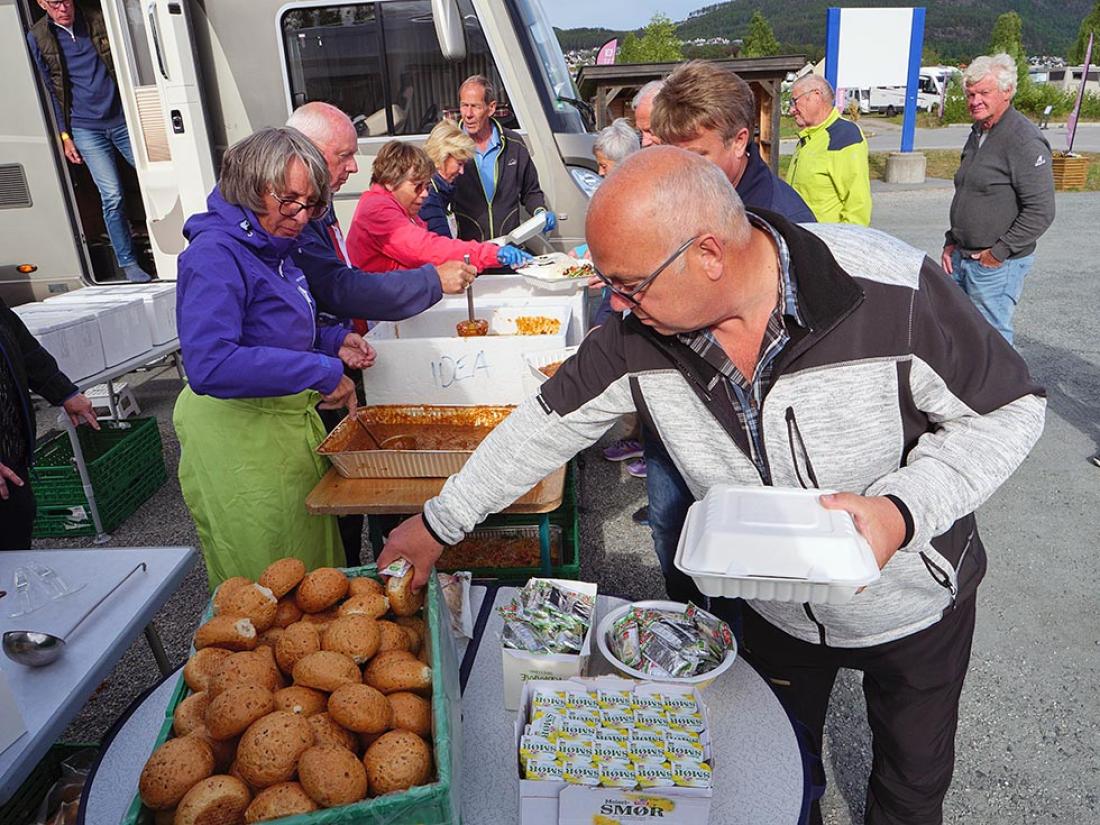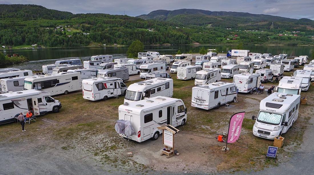 Bobilparkeringen på Nesøya i Notodden var valgt som treffsted for bobilentusiastene. Endelig kunne man møtes uten å passe på meteren. Det vil si, ett avstandskrav er fremdeles viktig: Alle bobiler skal ha minst fire meters avstand mellom seg. Og når 83 bobiler skal parkeres, er det praktisk å ha en fire meter lang pinne for å få alle bobilene trygt parkert. Så kunne de 160 deltakerne åpne dørene og møtes til hyggelig samvær.