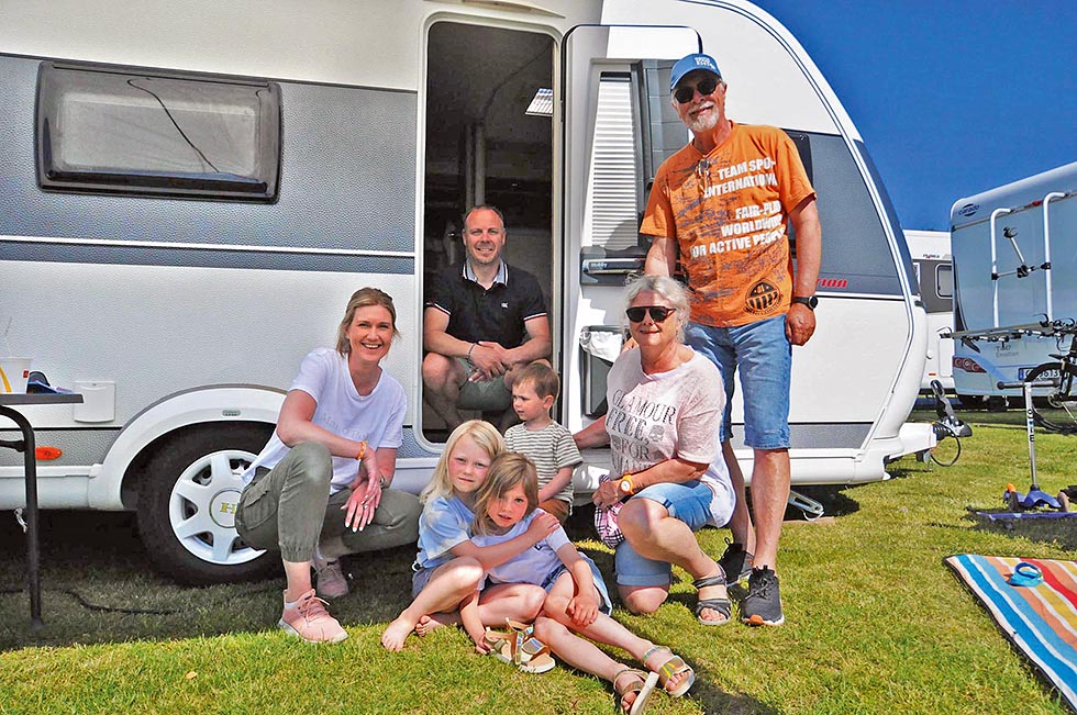 Grebbestad viste seg fra sin beste side i pinsen, og familien var storfornøyd da de kunne rigge til sin Hobby campingvogn.