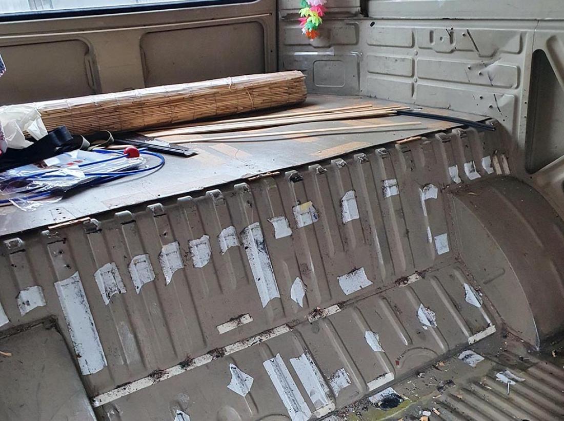 Jeg fikk vite hva jeg trengte, og målte lengder og bredder, bestilte og handlet inn. Braketter fra Hotshop til å feste baksetet i karosseriet, gode madrassdeler i tilpassede mål fra Skumplastsenteret, møbelstoff og stiftepistol.