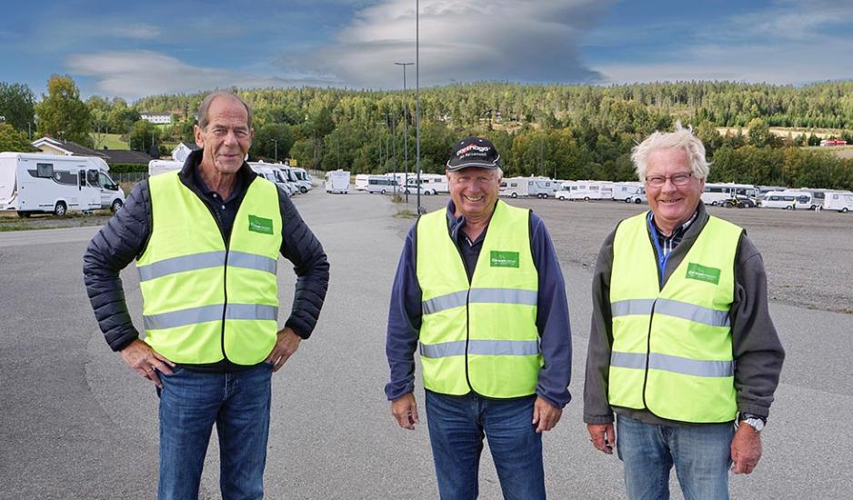 – Her er ingen forhåndsbestilling, betaling foregår enkelt og greit med en app på telefonen eller betalingsautomat på området. Det er fine, enkle forhold her. Det er mulig å fylle på vann, tømme do-kassetten og gråvannet. Faste sanitæranlegg er det på området. Det er begrenset kapasitet til strøm, så her er det bare de med spesielle behov som får tilgang, forteller en entusiastisk trio: Carlo Wighus og Aage Semb fra Norsk Bobilforening (NB) og Arild Berg fra Norsk Bobil og Caravan Club (NBCC), til Din Fritid.