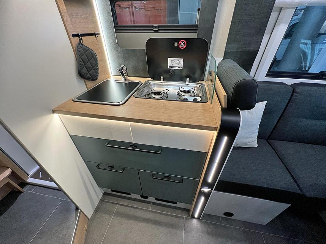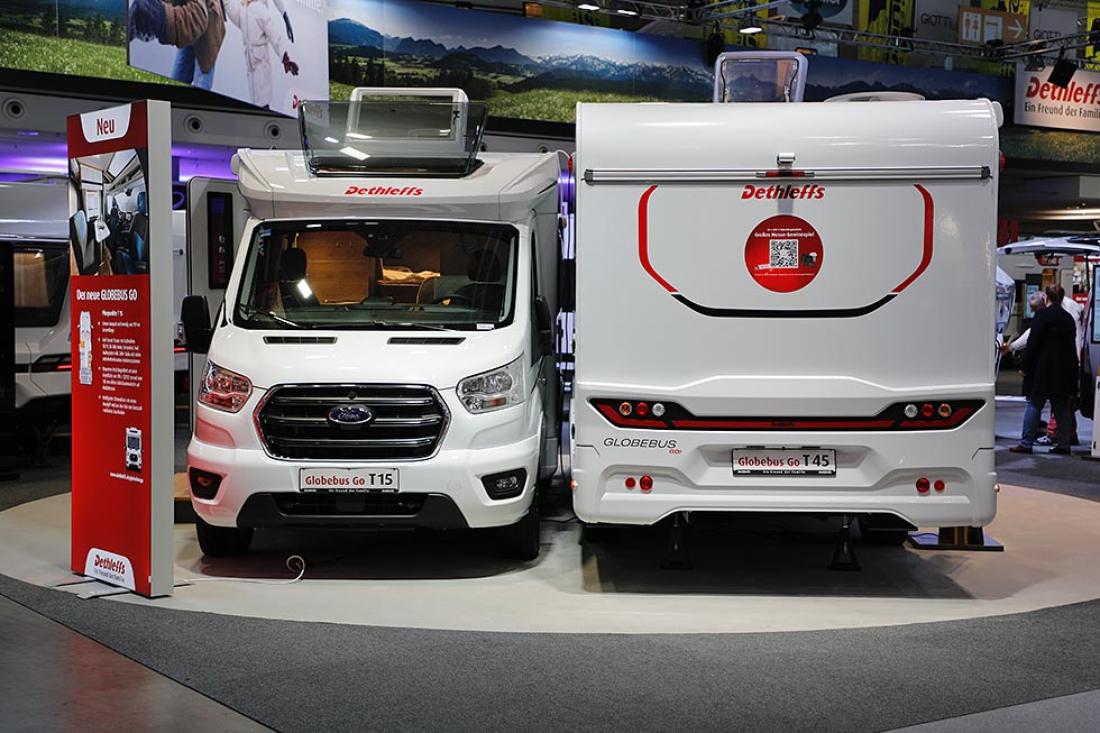 Det er ikke lenge siden Dethleffs lanserte sine første bobiler på Ford Transit-plattformen. Nå utvides utvalget med to nye modeller i deres kompakte Globebus-serie. Modeller basert på Ford får navnetillegget Go hos Dethleffs. Globebus Go T15 (lengde 599 cm) og T45 (lengde 669 cm) er begge 220 cm brede. Førstnevnte har tverrstilt dobbeltseng, mens sistnevnte er nok mer aktuell for det norske markedet med sine enkeltsenger. Interiøret på utstillingsmodellen var en blanding mellom tradisjonelt treverk og mørkegrå flater, i kombinasjon med en frisk blåfarge.