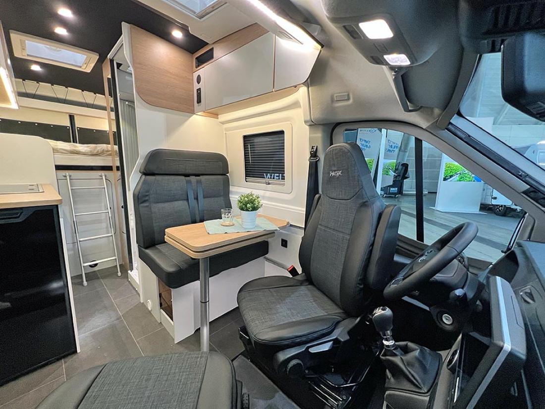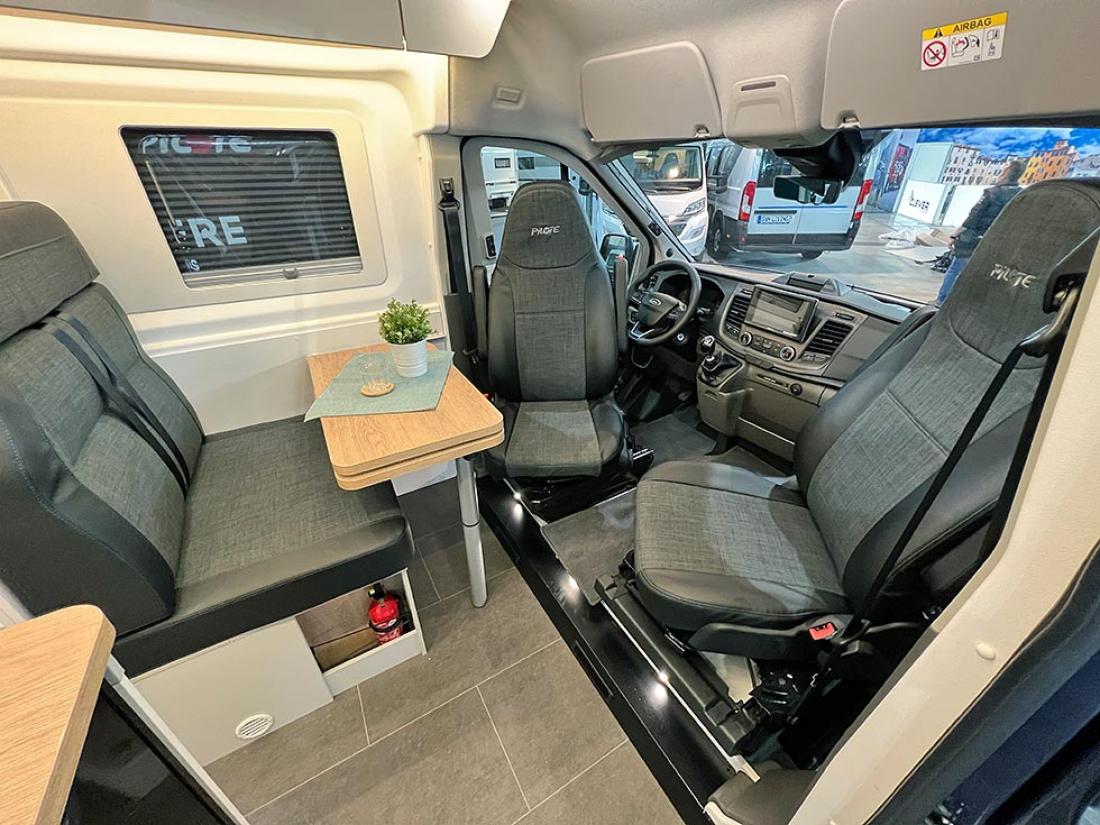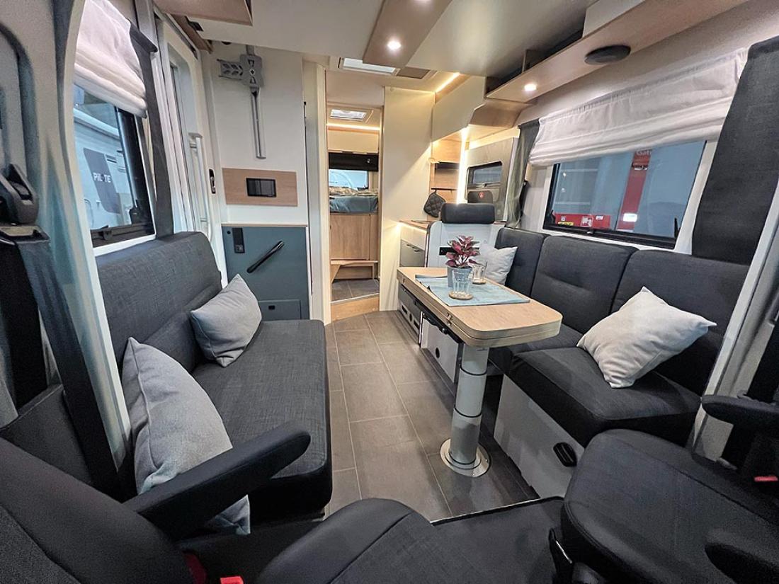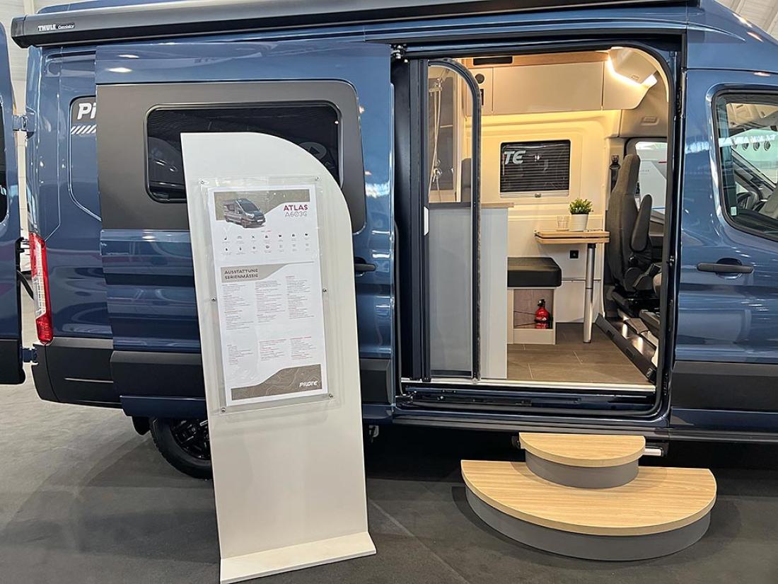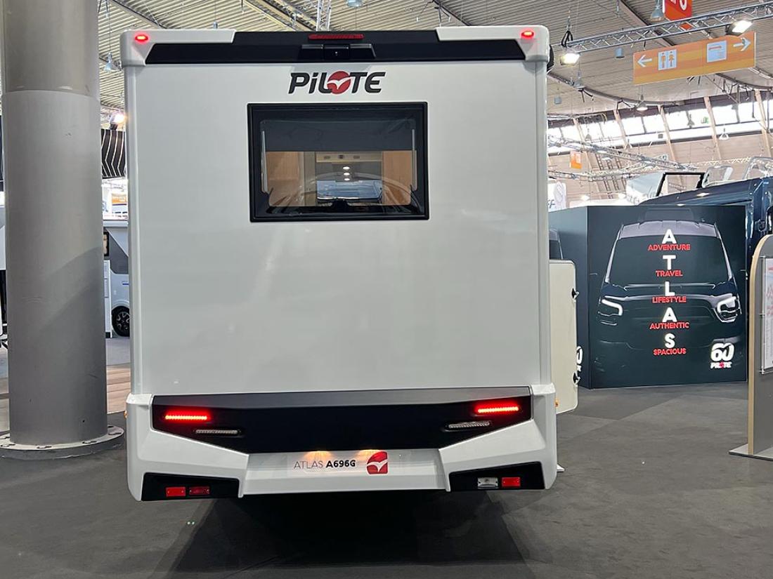 Pilote Atlas 696G er en ny halvintegrert bobil med sidesittere. I 1978 lanserte Pilote sin første bobil på Ford. Og ja, du gjetter riktig om du tipper at årets nyhet også er bygget på Ford Transit-chassis. Produsenten anstrengte seg til det ytterste for å gi den nye modellen oppmerksomhet på messens pressedag. Store mengder svart silkestoff var funnet fram, og det ble fysisk avduking av bobilen, som ble presentert som en verdensnyhet. Hvor unik er så den franske modellen? Det må være en av de aller første halvintegrerte bobilene vi har sett på Ford som har en sidesittergruppe. Den ene av de to sofaene er ekstra lang, og det er plass til mange mennesker rundt bordet i denne bilen. Men en tverrstilt dobbeltseng som hovedseng kommer ikke til å gjøre den til en norsk bestselger, tipper vi.