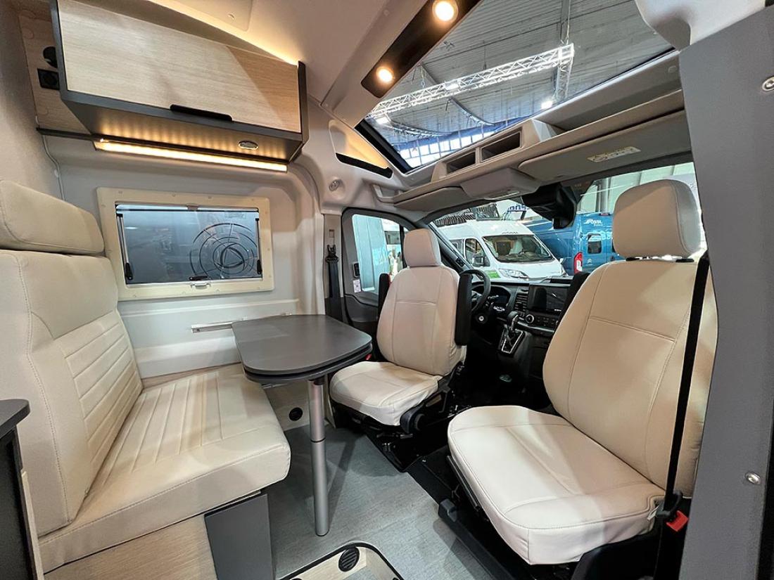 Dreamer har lenge levert de de kaller «skyview» på sine bybobiler. På messen i Stuttgart viste de fram spesialutgaven D51 Fun Addict Blue på Ford, med dette ekstra vinduet i front av bilen. Det gir bedre utsikt og mer lys inn i den 599 cm lange bobilen. Med 16-tommers aluminiumsfelger fra Ford og knallblå metallic-farge fikk den populære modellen mye oppmerksomhet.