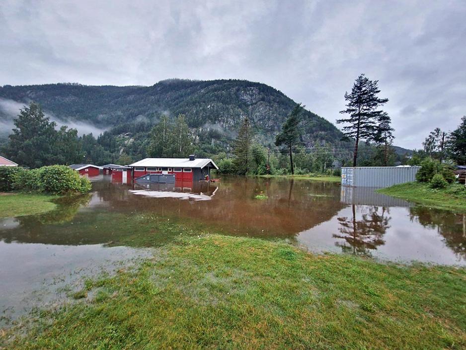 – Jeg måtte be alle som ringte om å ikke komme. Det var meldt så stygt vær at jeg forstod at de risikerte å bli innesperret her, mellom fjellet og elva, sier Hamid Lutfi. Han eier og driver Liodden camping ved Hallingdalselva.