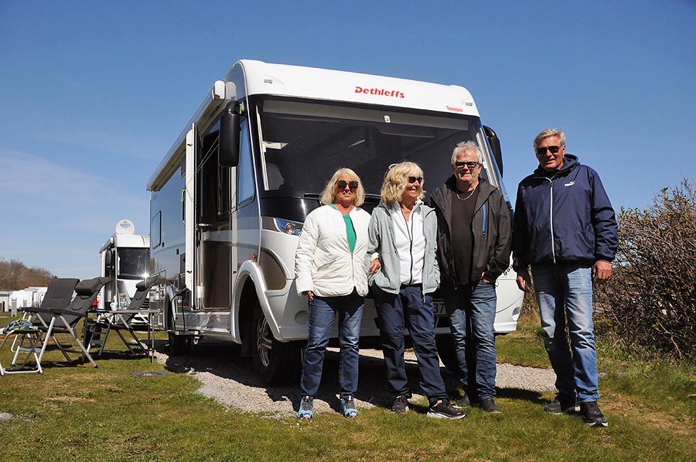 – Vertskapet har gjort det enkelt å trives her, og stedet er lett tilgjengelig for oss. Det har ikke minst med den akkurat passe lange kjøreturen fra Porsgrunn å gjøre, smiler firkløveret. Din Fritids utsendte treffer Torun Angell, Jon Høhrbye, Terje Isaksen og Tove Iren Johansen utenfor sine to romslige bobiler. De reserverer gjerne plassen nærmest sjøen og båthavna. Da er det kort vei til turveien og badeplassen, forteller de.