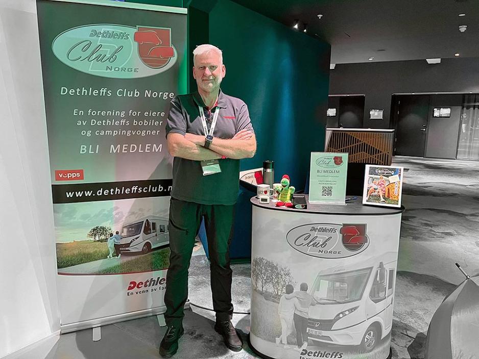 DETHLEFFSKLUBBEN: Hallstein Sørebø er leder i Dethleffs Club Norge, og stilte opp frivillig på messen for å fortelle om klubben og verve nye medlemmer.