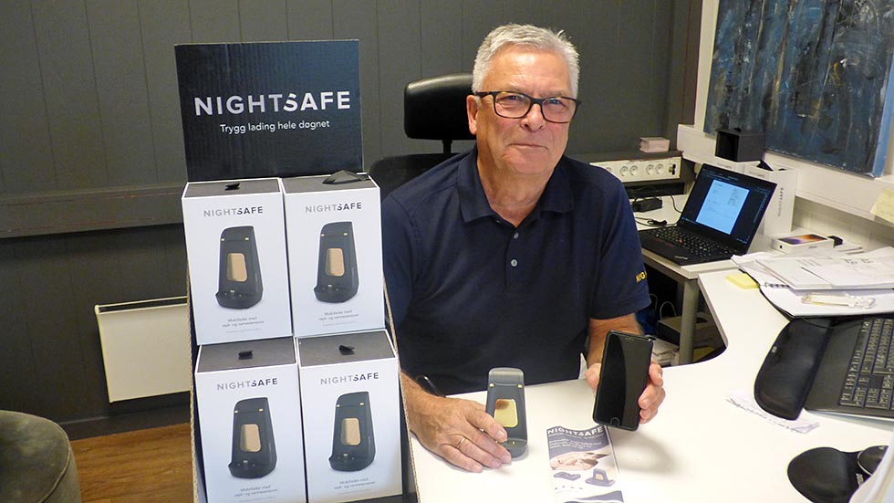 Nigthsafe er en mobillader med innebygd varmesensor og røykvarsler. Med denne sover du ekstra godt om natta, hevder gründer og daglig leder Eyolf Johansen.