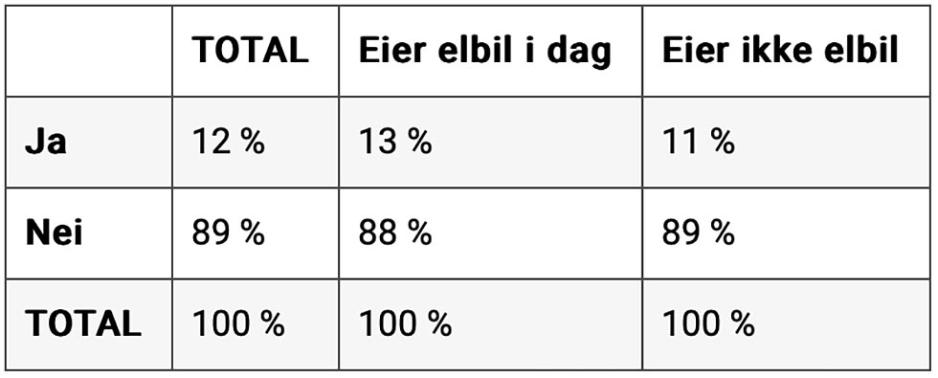 Salgstallene for nye biler i januar 2024 underbygger dette. I et tregt nybilmarked, var 92,1 prosent elbiler. At færre ser for seg å bytte ut bilen med en elbil fremover, kan være med å påvirke om folk tror 2025-målet blir nådd.