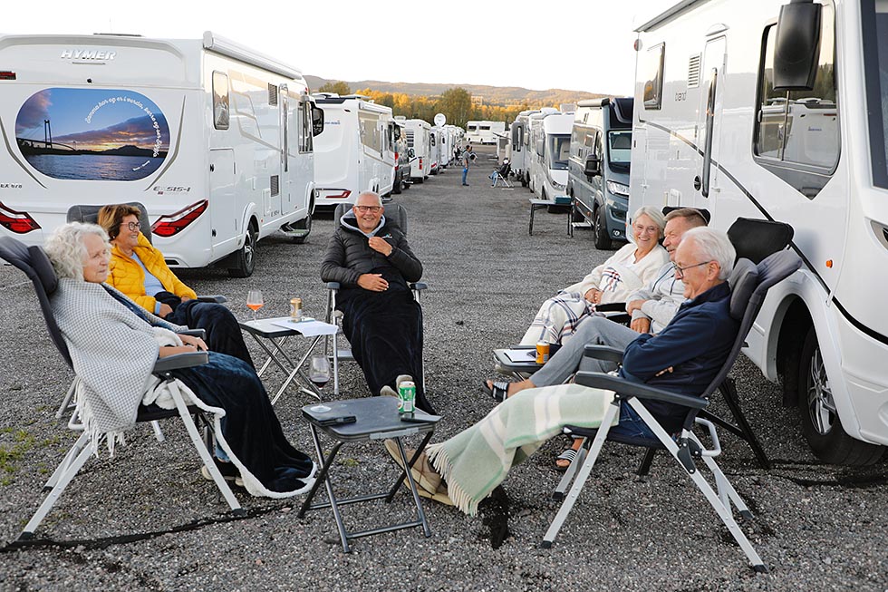 Kvelden før dørene åpner tok Din Fritid en tur på messecampen. Her fant vi blide bobileiere som nøt det fine været utendørs.