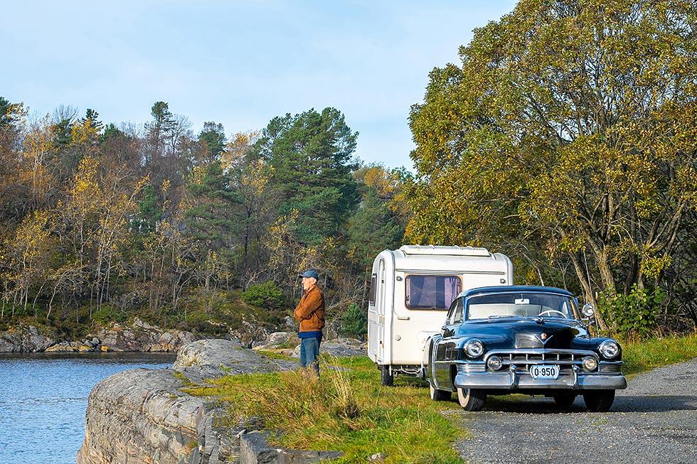 I ti år har ekteparet kjørt på tur med bilen. I sommer satte Cadillacen og Safari 280-vognen kursen sørøver, over Stord og til Lyngdal. Deretter gikk turen til Fagernes og Valdres, før de snudde kromgrillen mot vest igjen.