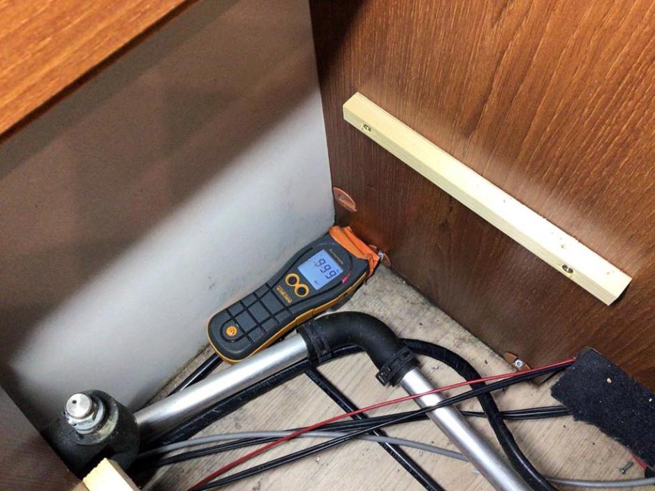 Så selv om deres nye bobil nettopp hadde fått en fersk godkjent fukttest, ønsket ekteparet å installere Avara Moist på sin nye bobil. Tryggheten med en automatisk løsning som i mange år kontinuerlig måler fuktnivået, var nettopp det de søkte etter. Etter å ha hentet bobilen hos en forhandler på Østlandet, ble det derfor booket time for installasjon av fuktmålingssystemet hos deres lokale forhandler Heistad Bil & Caravan. Det gikk ikke helt som forventet. Teknikeren kom tilbake, og kunne fortelle at bobilen hadde fuktlekkasje. Alle røde lamper lyste bokstavelig opp når de fjernet et deksel.